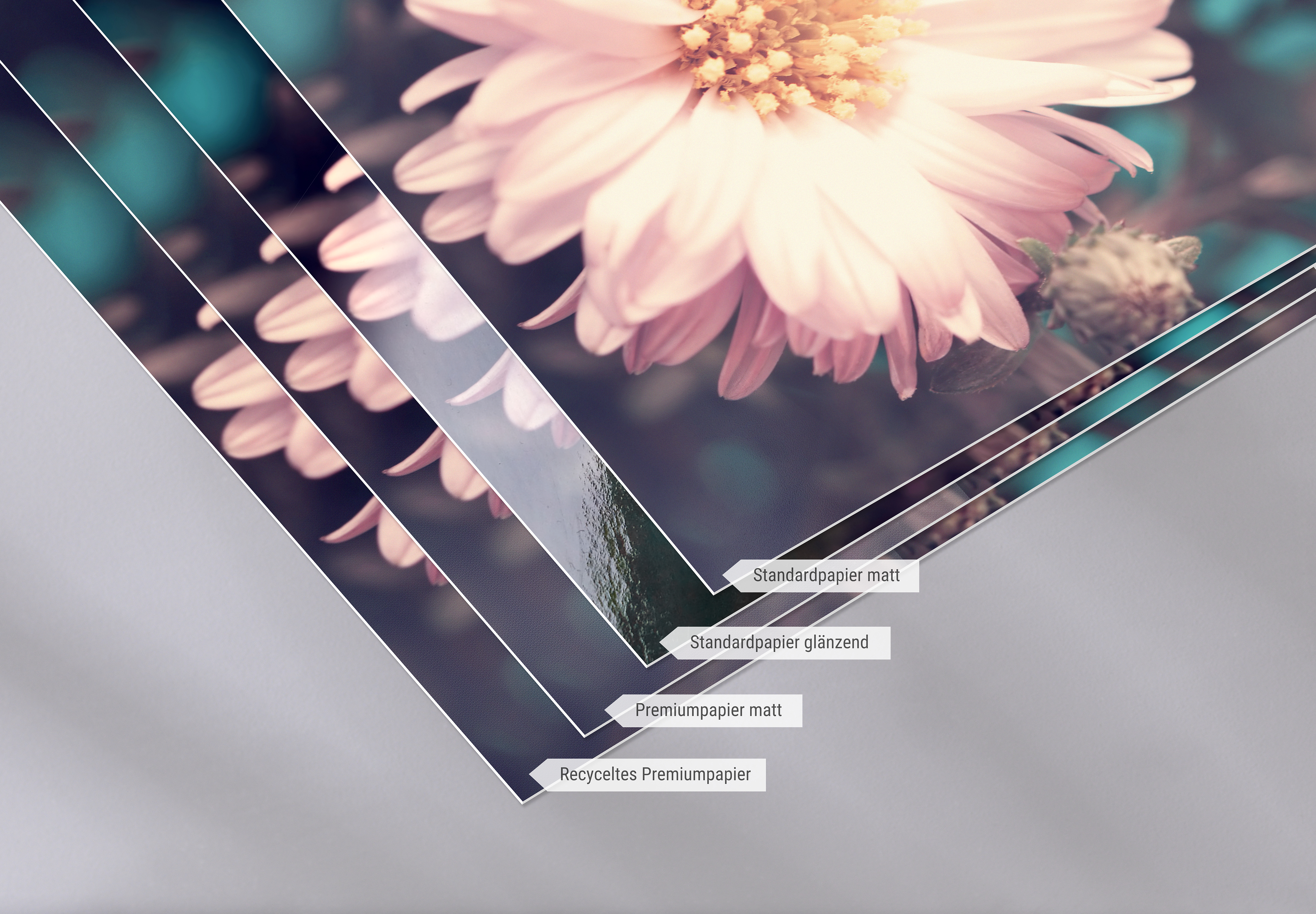 Papiertyp: Je nach Produkt stehen dir unterschiedliche Papierarten zur Auswahl - in matt und glänzend.