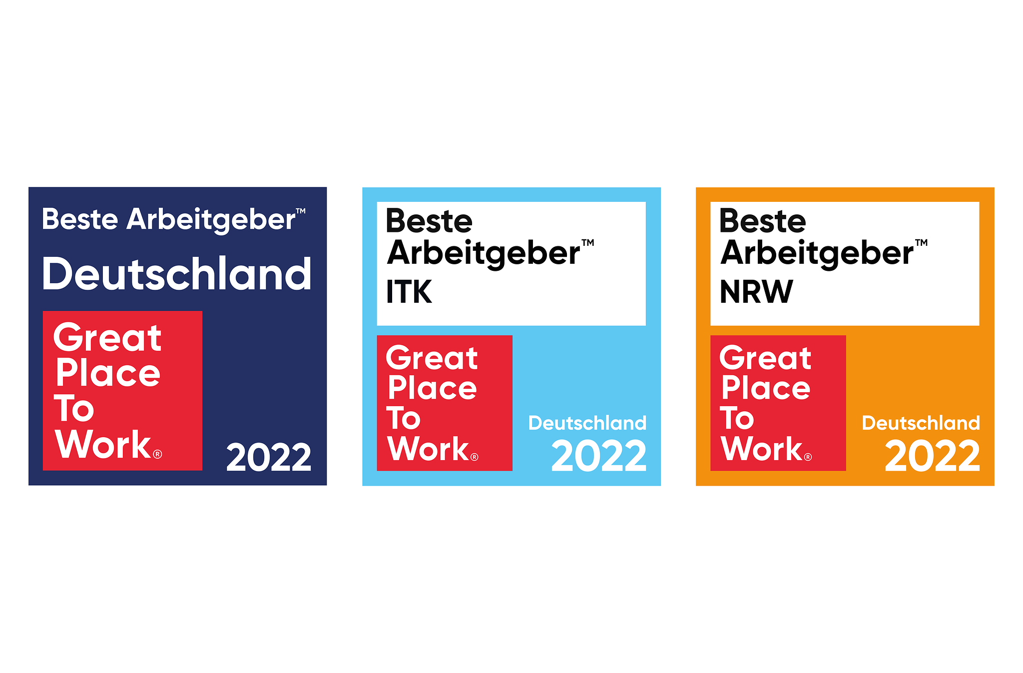 Wir sind stolz, dass wir offiziell die Auszeichnung "Deutschlands Beste Arbeitgeber 2022" vom unabhängigen Institut Great Place to Work® erhalten haben. Ebenso können wir uns über zwei weitere Auszeichnungen in den Top 20 "Beste Arbeitgeber NRW" sowie "Beste Arbeitgeber in der Informations- und Kommunikationstechnologie (ITK)" freuen.